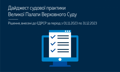 Верховний Суд опублікував дайджест судової практики Великої Палати Верховного Суду (рішення, внесені до ЄДРСР за листопад – грудень 2023 року) - https://supreme.court.gov.ua/userfiles/media/new_folder_for_uploads/supreme/ogliady/Dajdgest_VP_VS_11_12_2023.pdf.