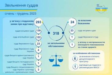 За загальними обставинами звільнено 318 суддів, а саме:
