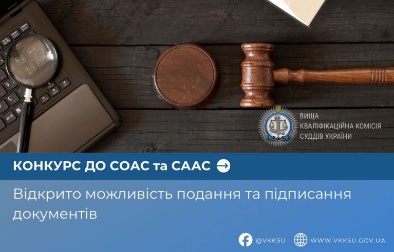 Інформуємо, що 01 грудня 2025 року в кабінеті суддівської кар’єри розпочався період подання та підписання документів для участі у процедурах конкурсів на зайняття вакантних посад суддів у Спеціалізованому окружному та апеляційному адміністративних судах. Він триватиме до 23 грудня 2025 року (включно).