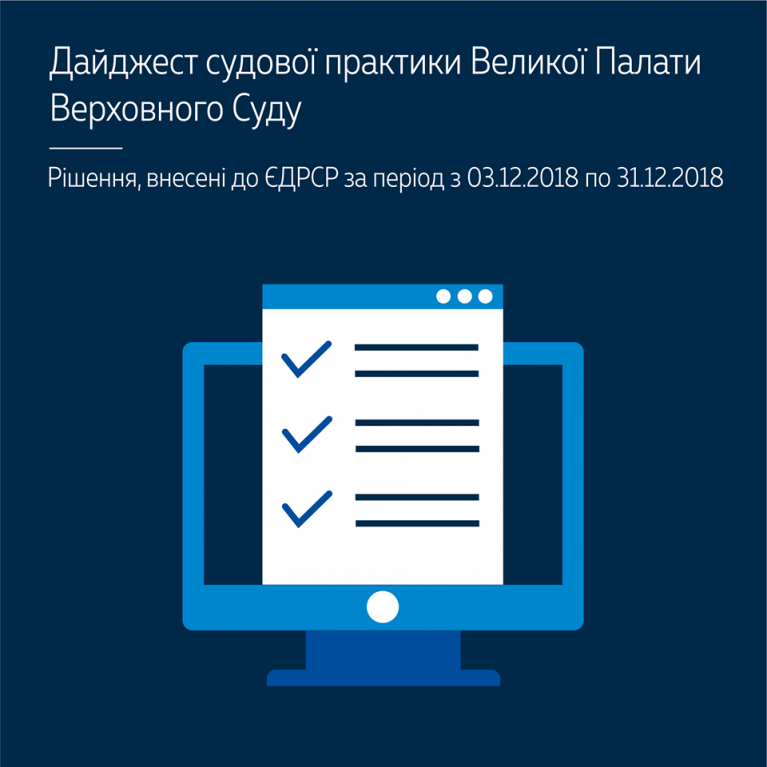 Верховний Суд пропонує ознайомитися з п’ятим дайджестом судової практики Великої Палати за період з 3 грудня 2018 року по 31 грудня 2018 року.