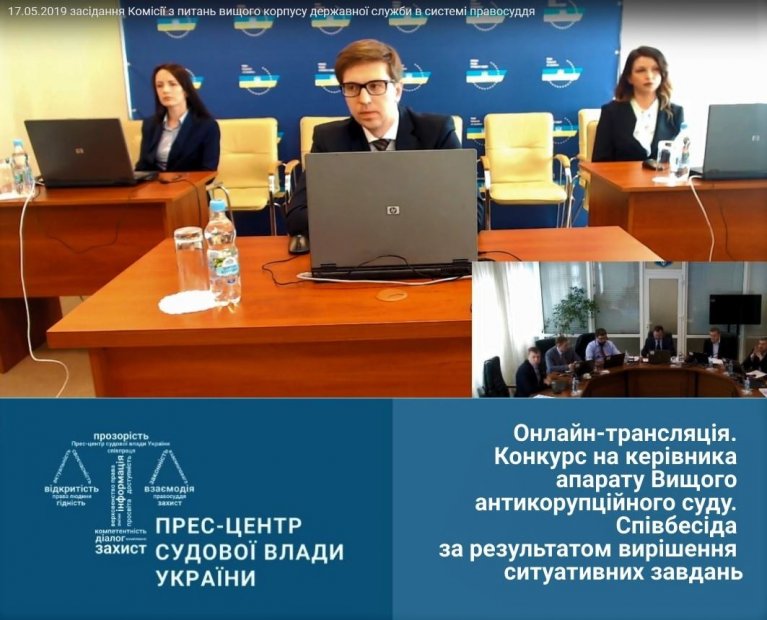 Нагадаємо, що 13 травня 2019 року відбулося засідання Комісії з питань вищого корпусу державної служби в системі правосуддя, під час якого проведено перевірку рівня володіння іноземними мовами та тестування на знання законодавства кандидатами на зайняття посад державної служби категорії «А» в системі правосуддя – керівника апарату Вищого антикорупційного суду.