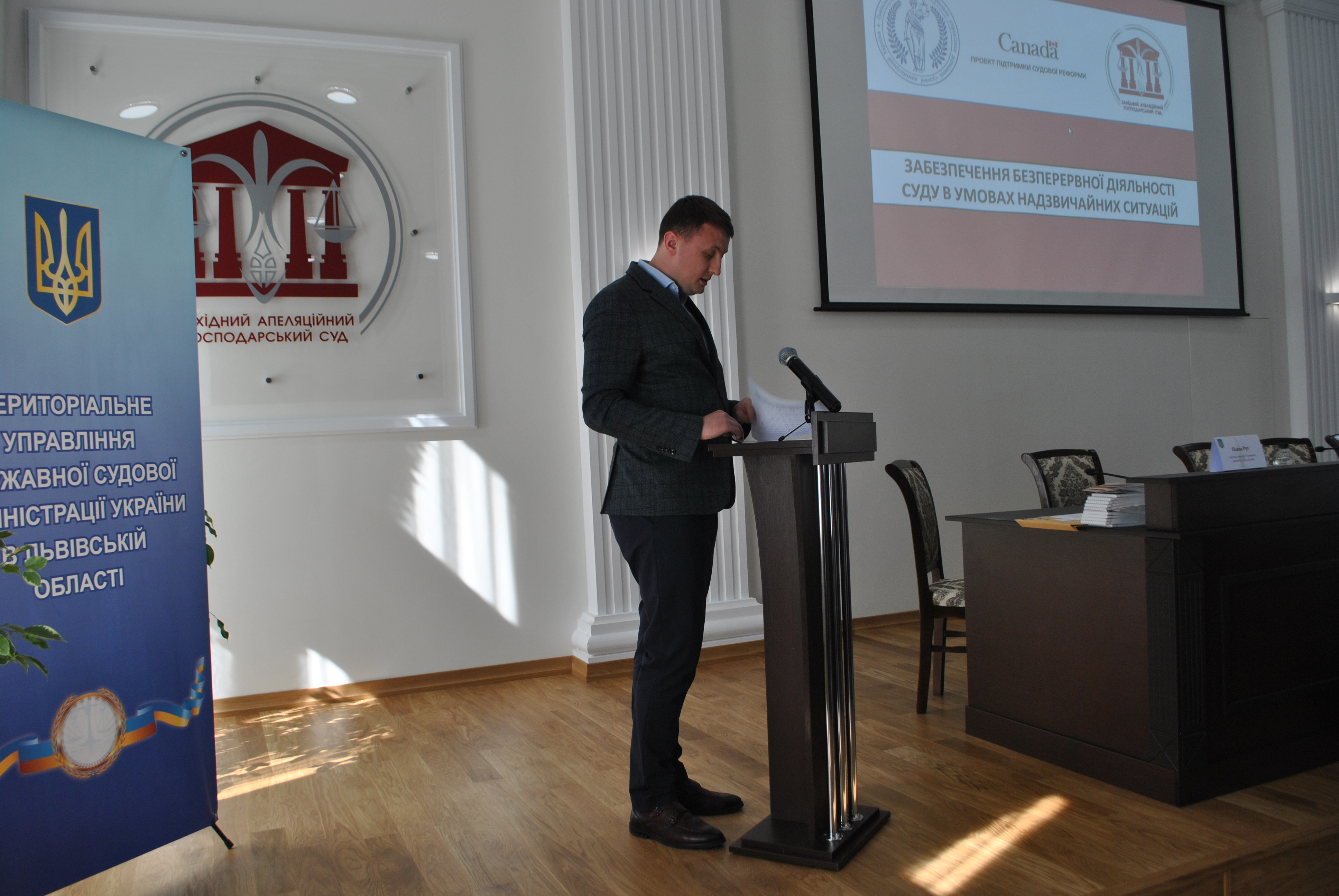 17 травня 2019 року на базі Західного апеляційного господарського суду (далі – Західний АГС) пройшов семінар для працівників апарату місцевих та апеляційних судів Львівської області на тему: «Забезпечення безперервної діяльності суду в умовах надзвичайних ситуацій». Захід організовано за сприяння українсько-канадського Проекту підтримки судової реформи в Україні у співпраці із Територіальним управлінням державної судової адміністрації України в Львівській області (далі – ТУ ДСА України в Львівській області).
